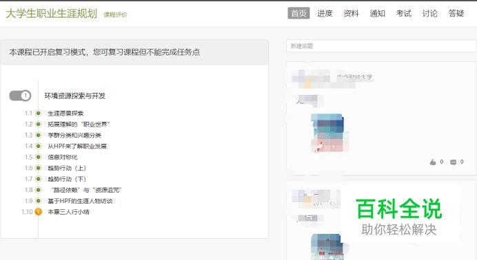 课程界面内左侧就是需要看的课程,绿色代表已经看过了,黄色代表还未观看,单击进入即可观看。