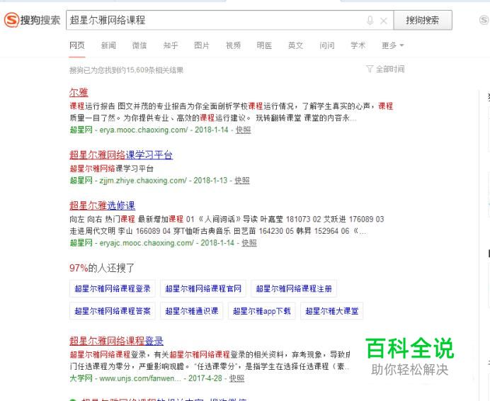 开启浏览器,搜索“超星尔雅网络课程”单击第一个“尔雅”结果进入网站。