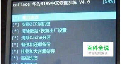 确认手机已刷入华为B199第三方recovery。没刷入的先刷入:sj.shoujiwan.net/sjgj/2014/0425/5134.html 如果是已经刷入的话,请无视这一步