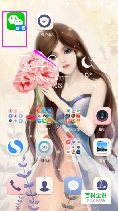 打开手机,我们找到微信图标,点击下进行打开,如图所示。