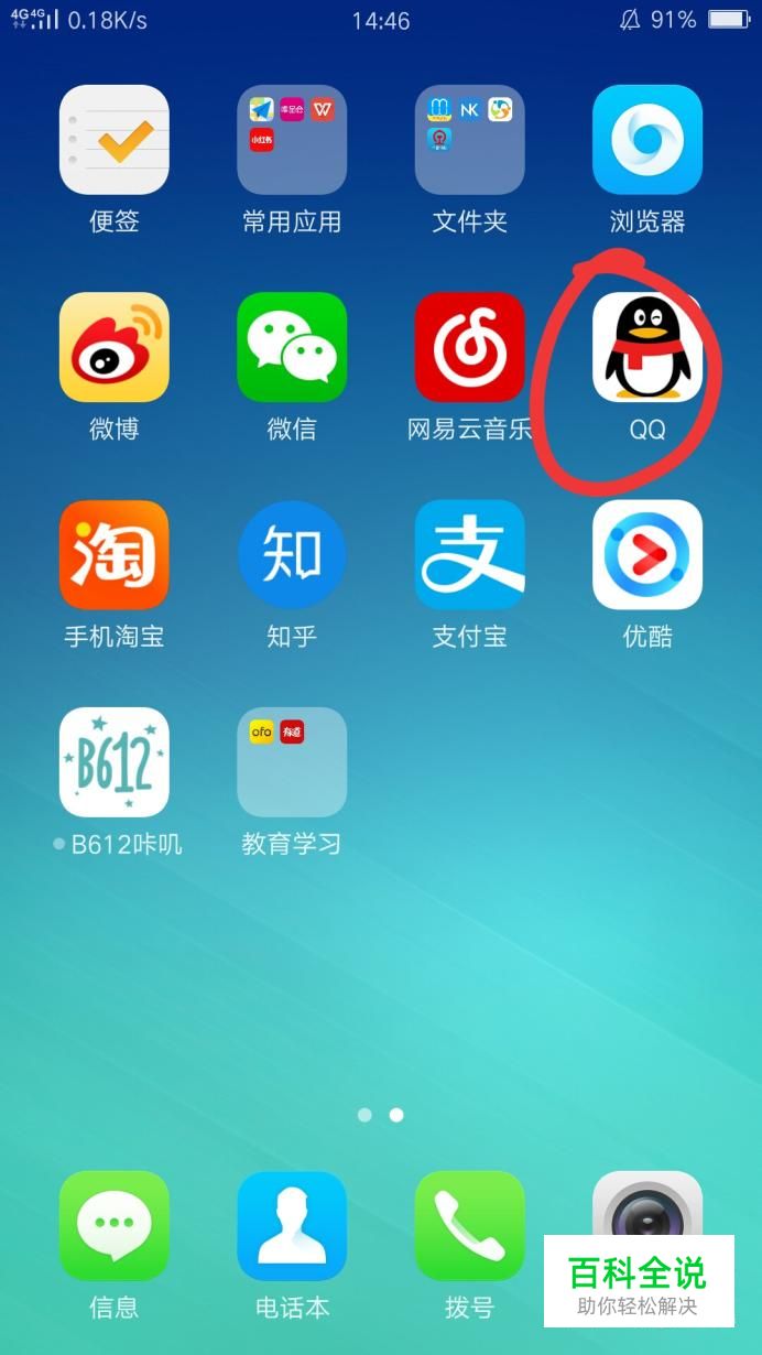 首先,打开手机,找到QQ图标,点开