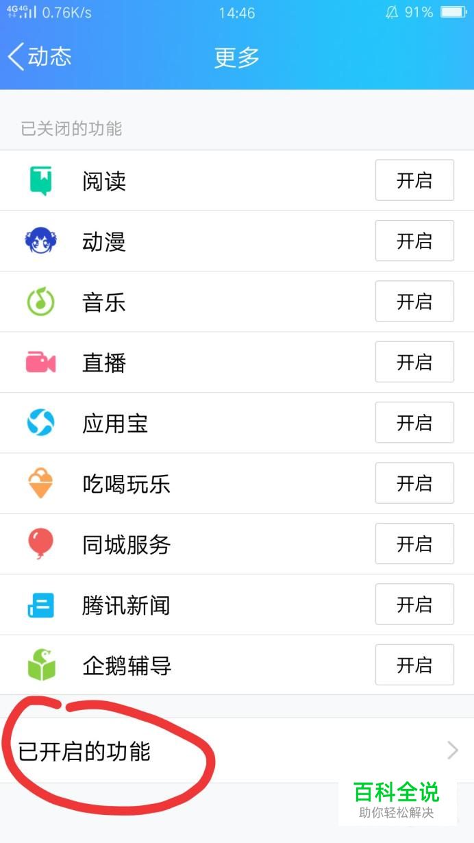 然后,我们选择最下面的“已开启的功能”