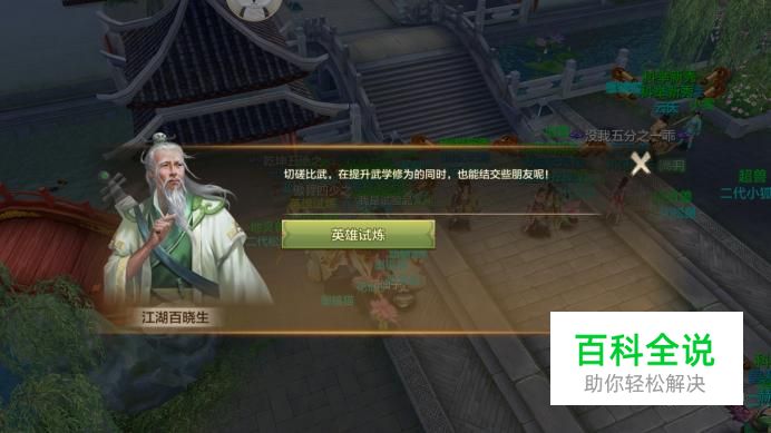 进入游戏主界面,在苏州找到“江湖百晓生”NPC进行对话,也可以点击“活动”查找。