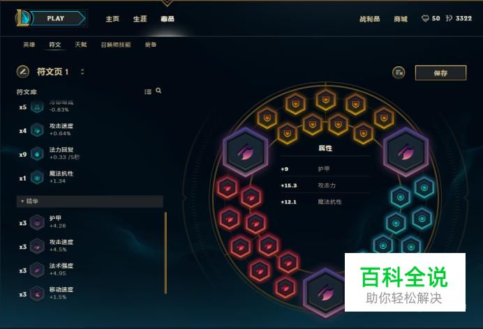 ap通用:用的是3个大精华是法强,红色印记9个法穿,黄色符印9个护甲,蓝色雕纹9个魔法抗性。是刚满级玩家刚开始配的一套基础符文。