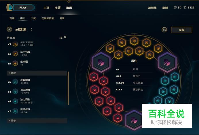 ad通用:用的是3个大精华是攻击力,红色印记9个攻击力,黄色符印9个护甲,蓝色雕纹9个魔法抗性。是刚满级玩家刚开始配的一套基础符文。