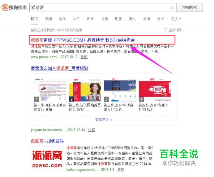 第一步,搜狗搜索 “派派窝”或“派派窝商城”(如下图)