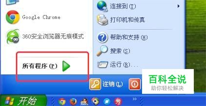 点击任务栏上的“开始”,打开开始菜单,点击“所有程序”。