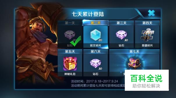 登录奖励: 只要玩家每天登录过王者荣耀游戏,此时就能获得登录奖励,当玩家在第一天、第三天和第六天进行登录的时候,此时都能够获得30颗钻石。