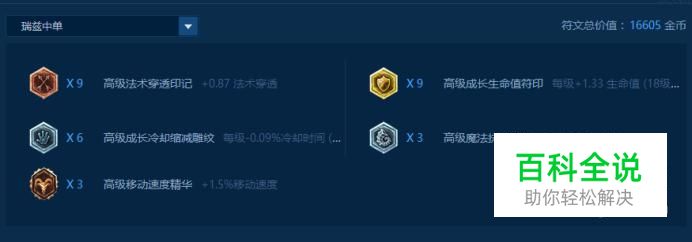 瑞兹在英雄联盟中的定位不用多说,相信大家都知道,但和其他法师不同的是瑞兹对于移动速度的要求特别高,因为他没有任何的位移技能,所以小编推荐选择:红色法术穿透*9、黄色成长生命*9、蓝色魔抗与减cd*9、大精华移动速度*3,开局就有3.5%的移速加成。