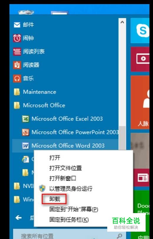 卸载后返回桌面,继续点击开始菜单,上下拖动,这是你就会发现应用已经被卸载了。