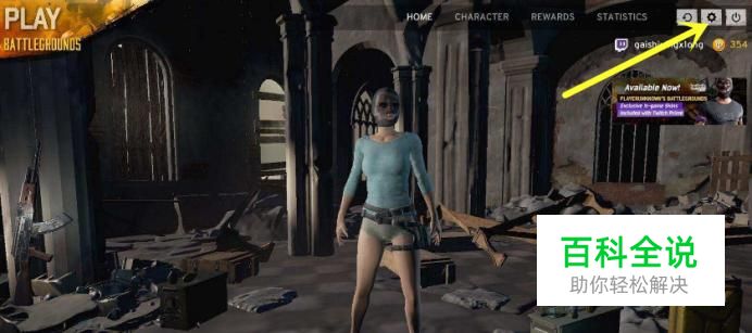 首先我们登录绝地求生后就会出现如下界面,我们在在此界面点击设置(如下图)