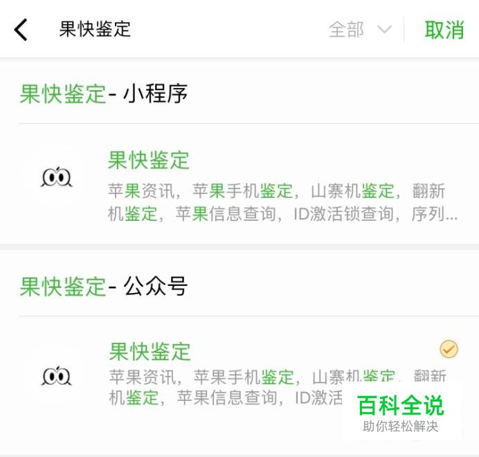 在iPad上打开微信,搜索果快鉴定公众号,然后进入公众号。