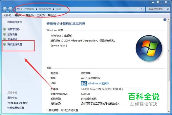 高级系统设置 会弹出【系统】窗口,在左侧找到【高级系统设置】链接,并点击它,如下图所示: