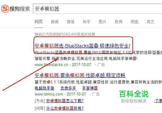 在搜狗搜索引擎中输入关键词“安卓模拟器”
