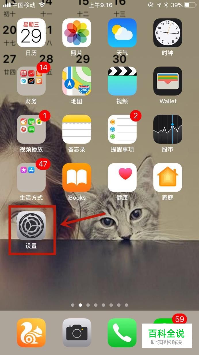 首先在苹果手机桌面上找到“设置”图标并点击它,如下图所示。