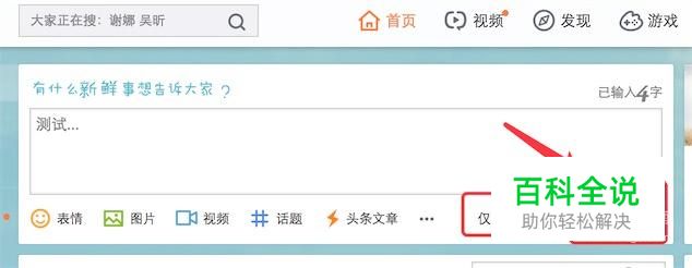 然后输入微博内容后,点击‘发布’按钮旁边的‘公开’二个字。