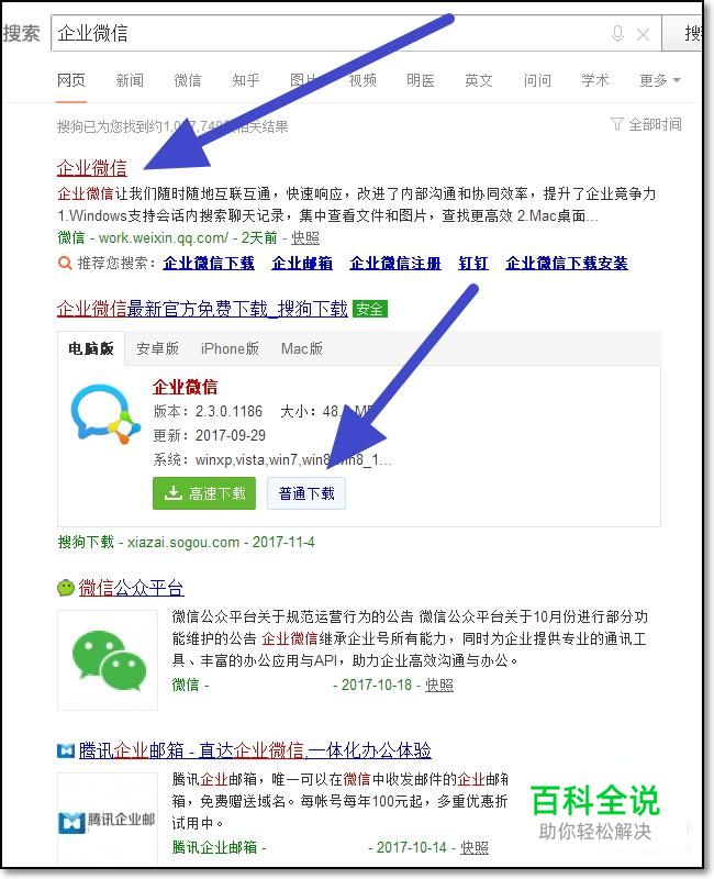 首先打开浏览器,搜索企业微信,点击第一个网页,进入到企业微信的官网。