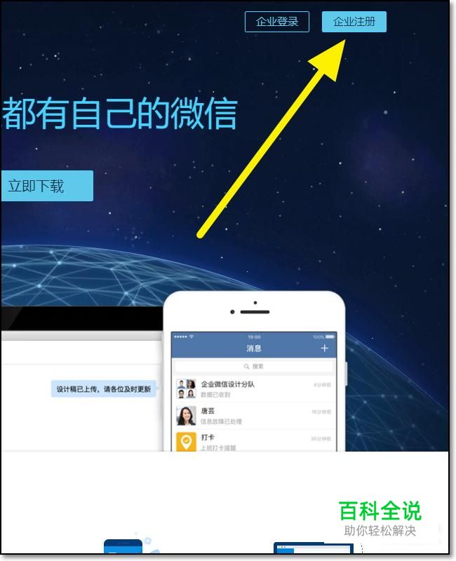 进入到企业微信的官网之后,我们点击右上角的企业注册。