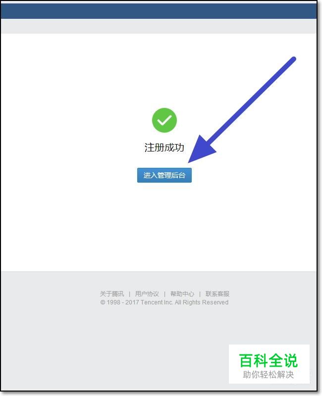 注册成功之后,页面会提示我们已经成功注册了,然后点击下方的进入管理后台。