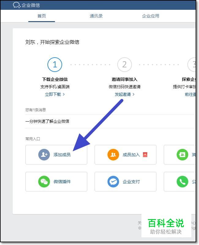 在企业微信的管理后台,我们点击添加成员。