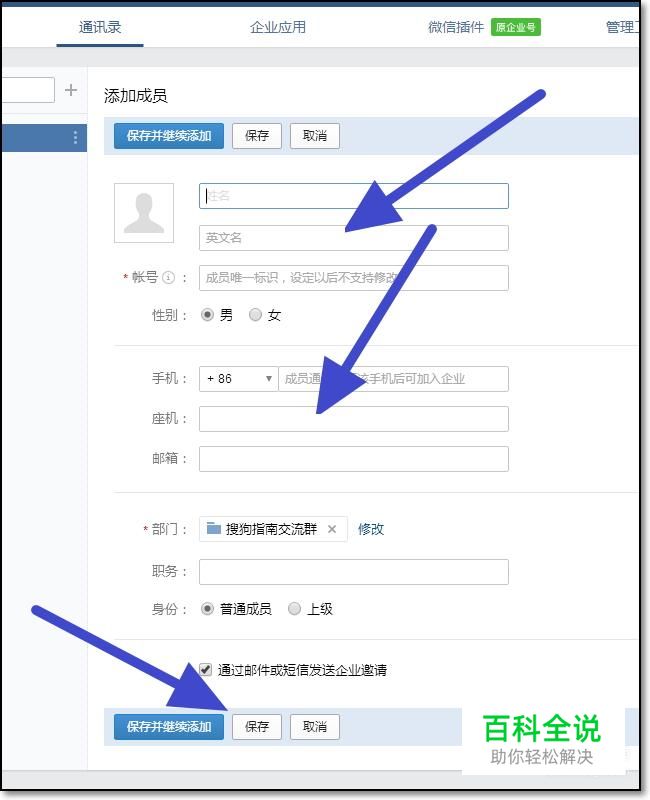 根据页面上的提示,详细地填入企业成员的内容,然后点击下方的保存。
