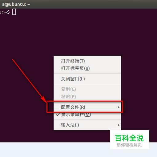 接着我们在终端上面单击鼠标右键,然后在弹出的菜单中点击“配置文件”就行了。