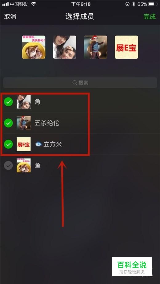 然后勾选你要开视频电话会议的人员名字,如下图所示。