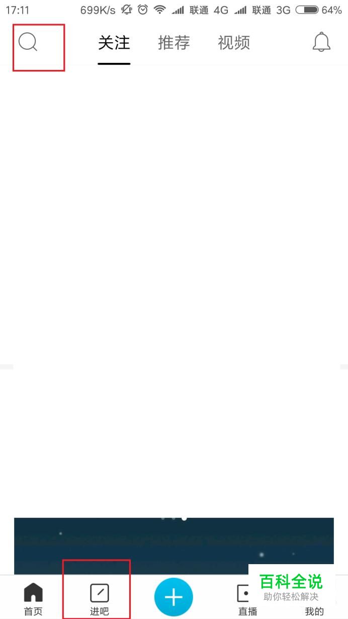 首先,请大家打开百度贴吧客户端首页面,点击页面左上角的“搜索”图标。