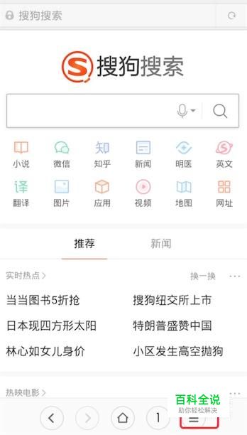 打开后,却发现转向到搜狗搜索的手机版页面了。 要打开电脑版的页面,我们先点击浏览器上的三横线图标。