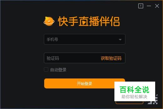 登录快手直播伴侣。登录方式有手机验证码登录和二维码登录两种。