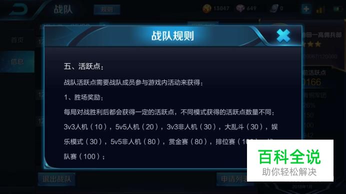 阅读此处的规则,在游戏里多多消费就可以获得活跃度,赛季后前一百名的战队有皮肤;希望各位加油努力;