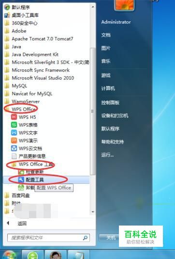 配置工具 找到【WPS Office】,在下方中找到【配置工具】并点击它,如下图所示:
