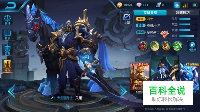 关羽是一名战士,特长是突进和先手,尤其是突进技能很强势,需要单独在线上发育,不要让别人抢了经济;