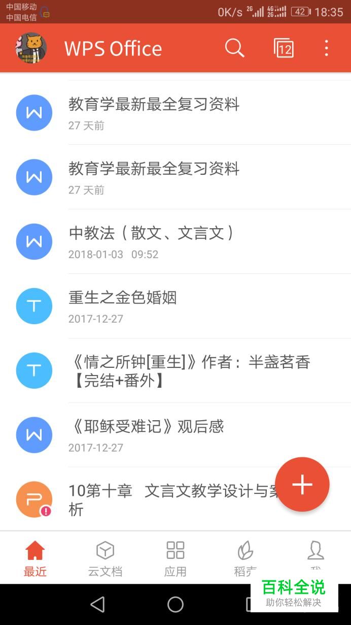 在手机上打开WPS,选择自己需要统计字数的文档,如:我选择《教育学最新最全复习资料》文档并打开。
