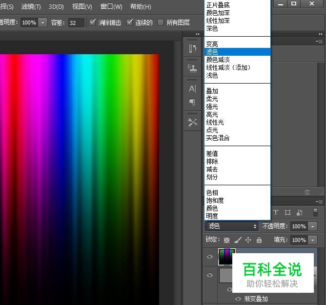将渐变叠加混合模式设置为正片叠底,渐变颜色设置为色谱,填充方式设置为对称,角度设置为0,并将图层混合模式设置为叠加。