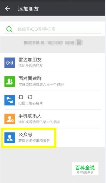 随后在“添加朋友”页面,点击“公众号”。