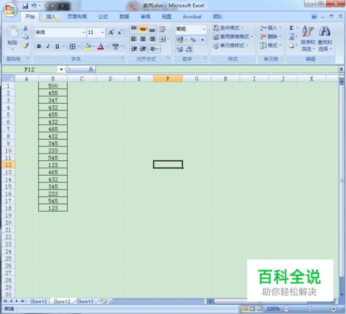 打开Excel软件,制作一列数据。