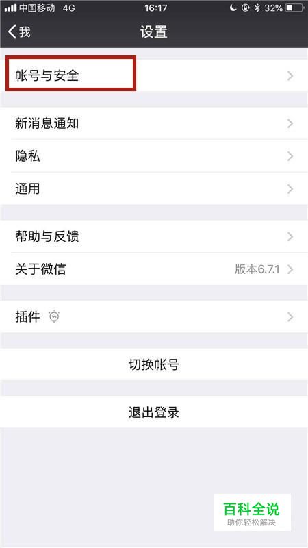 然后点击账号与安全,如下图所示。