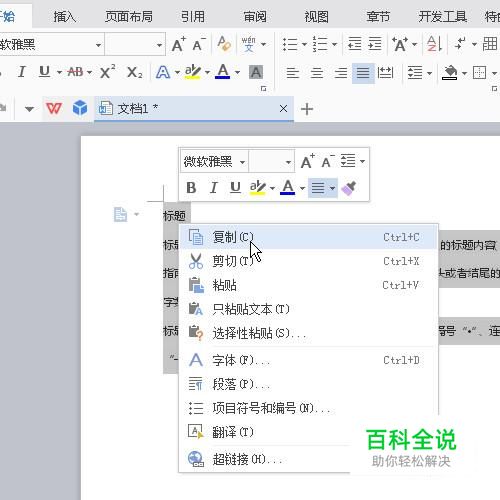 比如,在文档中输入一段文字,然后,执行复制。