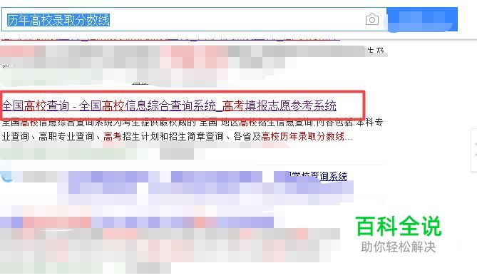首先,我们打开我们的浏览器,然后我们在搜索引擎中输入历年高校录取分数线,然后我们按回车键;