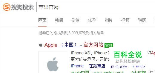 然后点击苹果官网,如下图所示。