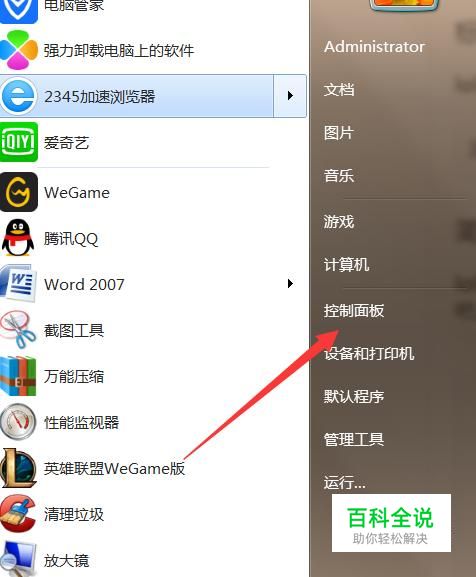 首先点击电脑旁的开始界面,如下图,然后找到控制面板,点击进入。