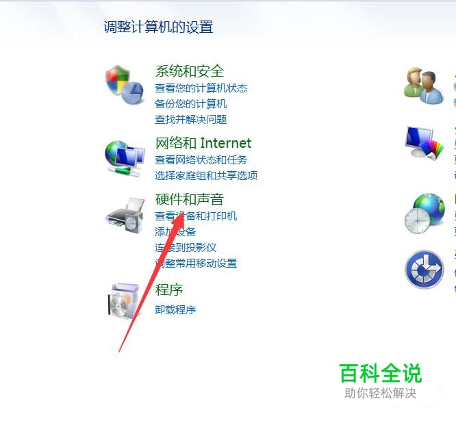 进入之后你会看到硬件和声音然后你要做的就是点击进入到里面。