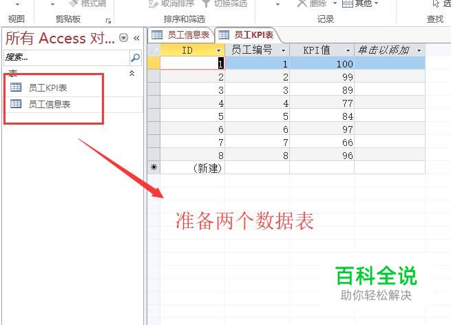 首先我们打开Access数据库,准备两个数据表,如下图所示,两个数据表之间通过员工编号进行关联