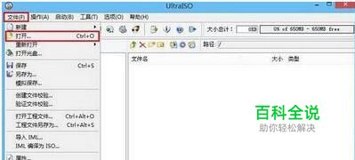 以管理员身份运行UltraISO工具,点击左上角—文件—打开。