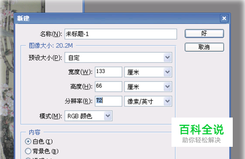3.新建立一块A4大小的纸张,分辨率设置和刚才建立四尺大小的一样,都72就够了。