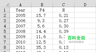 首先看这三列数据,我准备做一个变量P4和H并排分布的柱形图,Year为标签列。