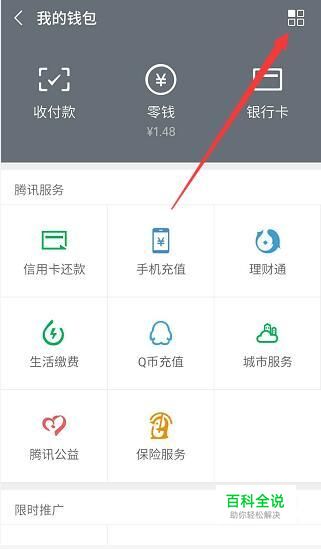 打开微信钱包,进入“我的钱包”页面后,点击右上角的四个框框。