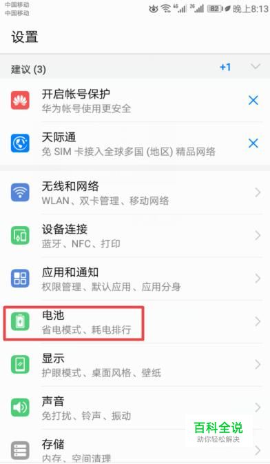 进入设置后,我们点击电池;
