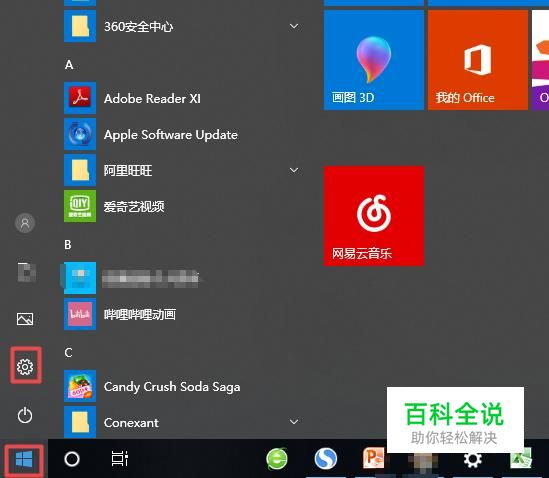 首先,我们点击电脑桌面左下角的微软按钮,弹出的界面,我们点击设置;